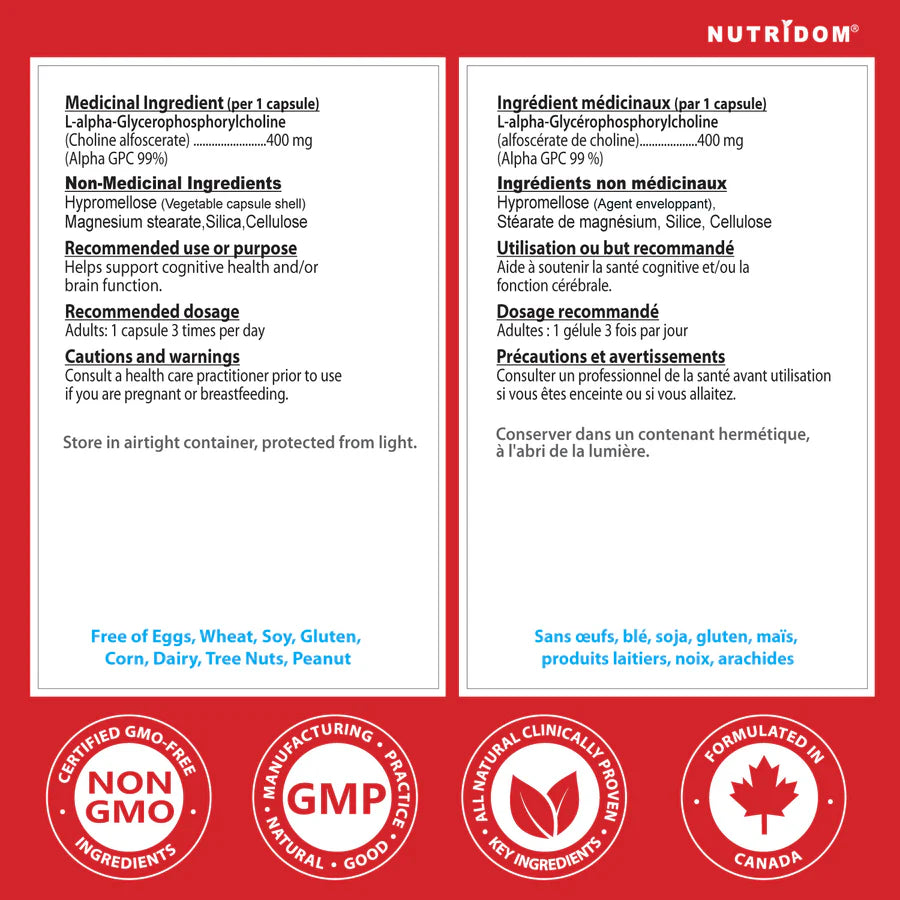 Nutridom Alpha GPC 400mg 90 Veg Capsules