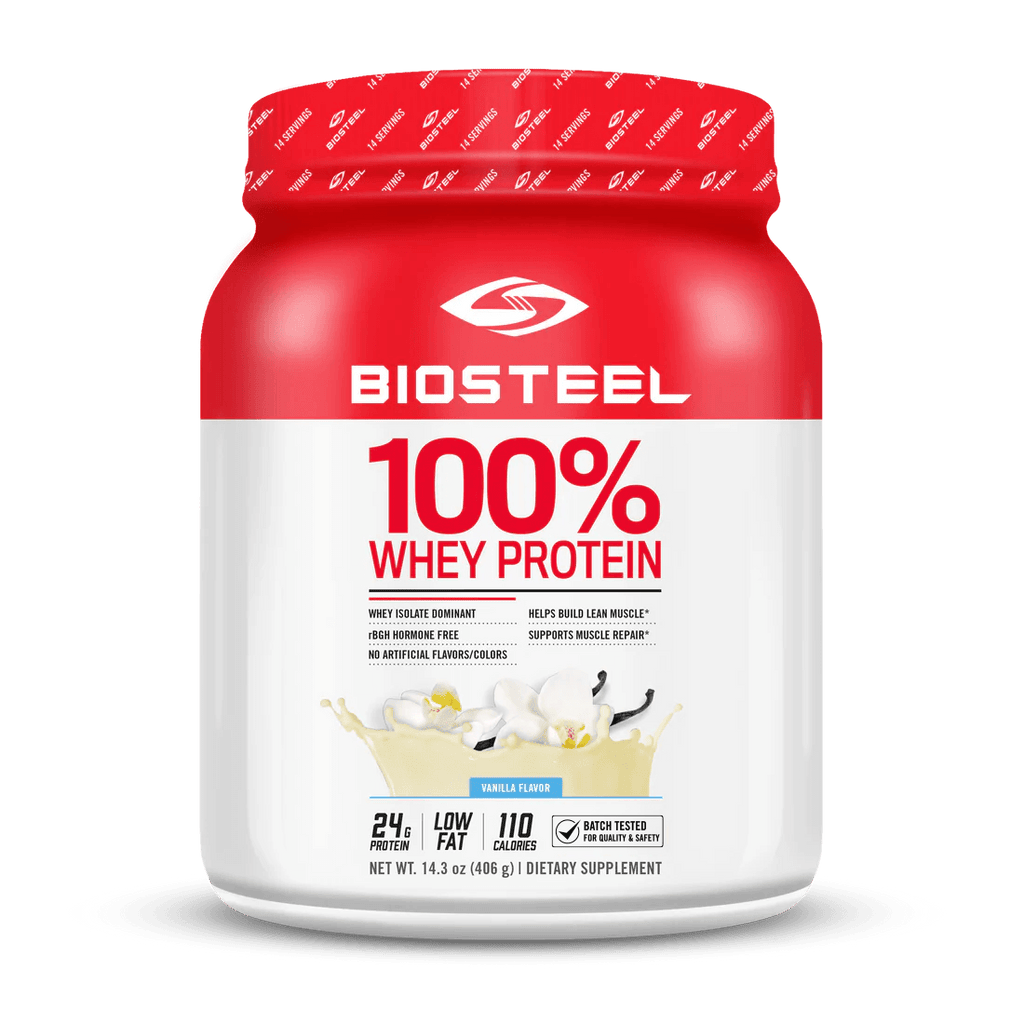 Discover pure protein perfection with BioSteel's 100% Whey Protein in smooth Vanilla flavor, now available in a convenient 14-serving container. This premium blend combines three high-quality protein sources to fuel your post-workout recovery with both classic taste and superior nutrition.